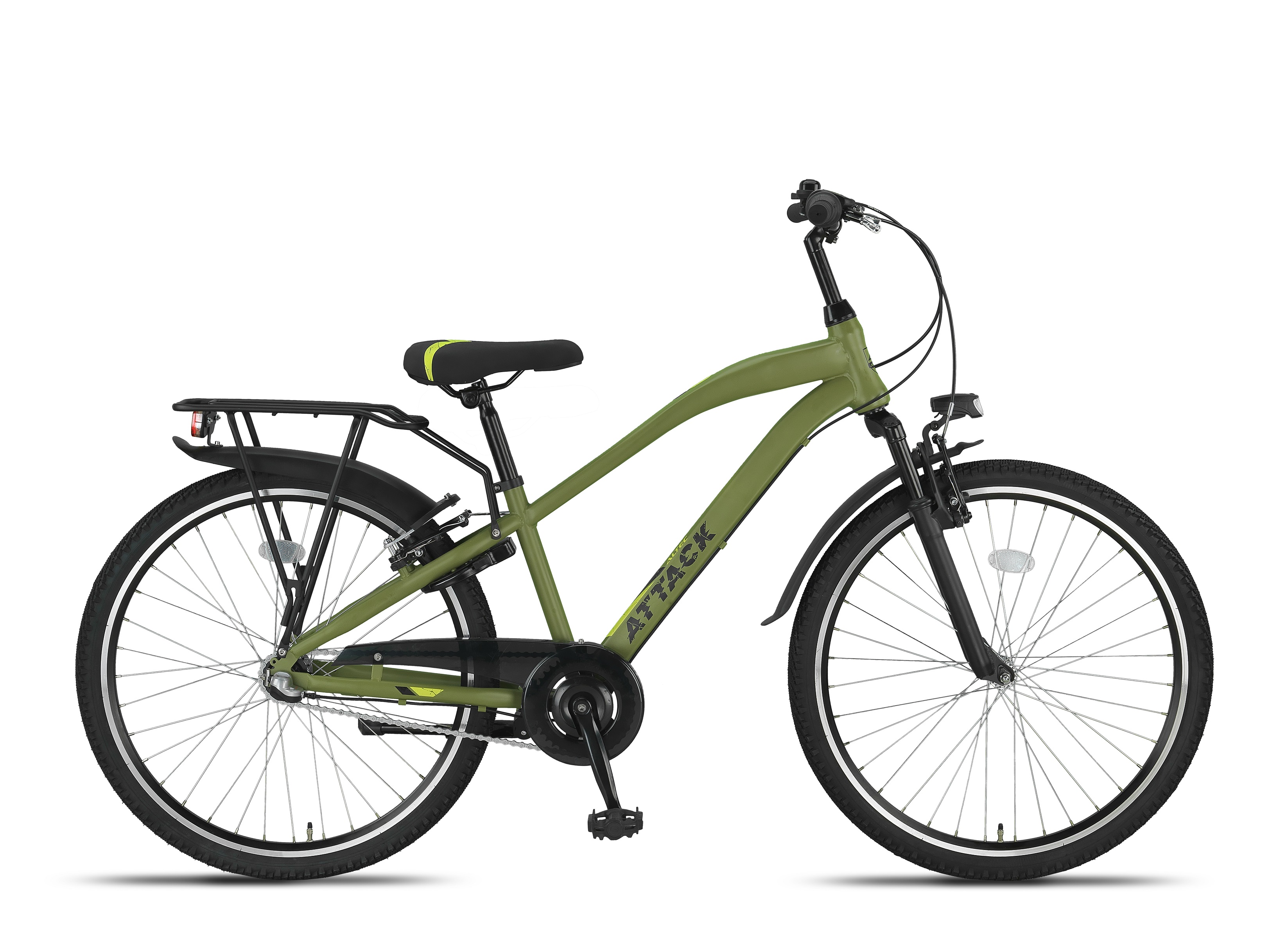 De Altec Attack N3 is een stoere mountainbike voor de jeugd. Omdat deze Altec Attack N3 met Shimano Nexus 3 naaf versnellingen en met terugtraprem is uitgevoerd is dit een ideaal instapmodel voor de jonge startende mountainbiker, maar is hij ook zeer geschikt voor gewoon dagelijks gebruik. Met de brede banden is geen terrein te ruig voor de Altec Attack N3, terwijl het niet al te groffe profiel op de banden ook geschikt is voor op de weg. De Altec Attack N3 wordt als 1 van de weinige mountainbikes compleet met standaard, verlichting, spatborden, bagagedrager en slot geleverd. En omdat een mountainbike er natuurlijk ook mooi uit moet zien is de Altec Attack N3 uitgevoerd in fraaie kleuren.