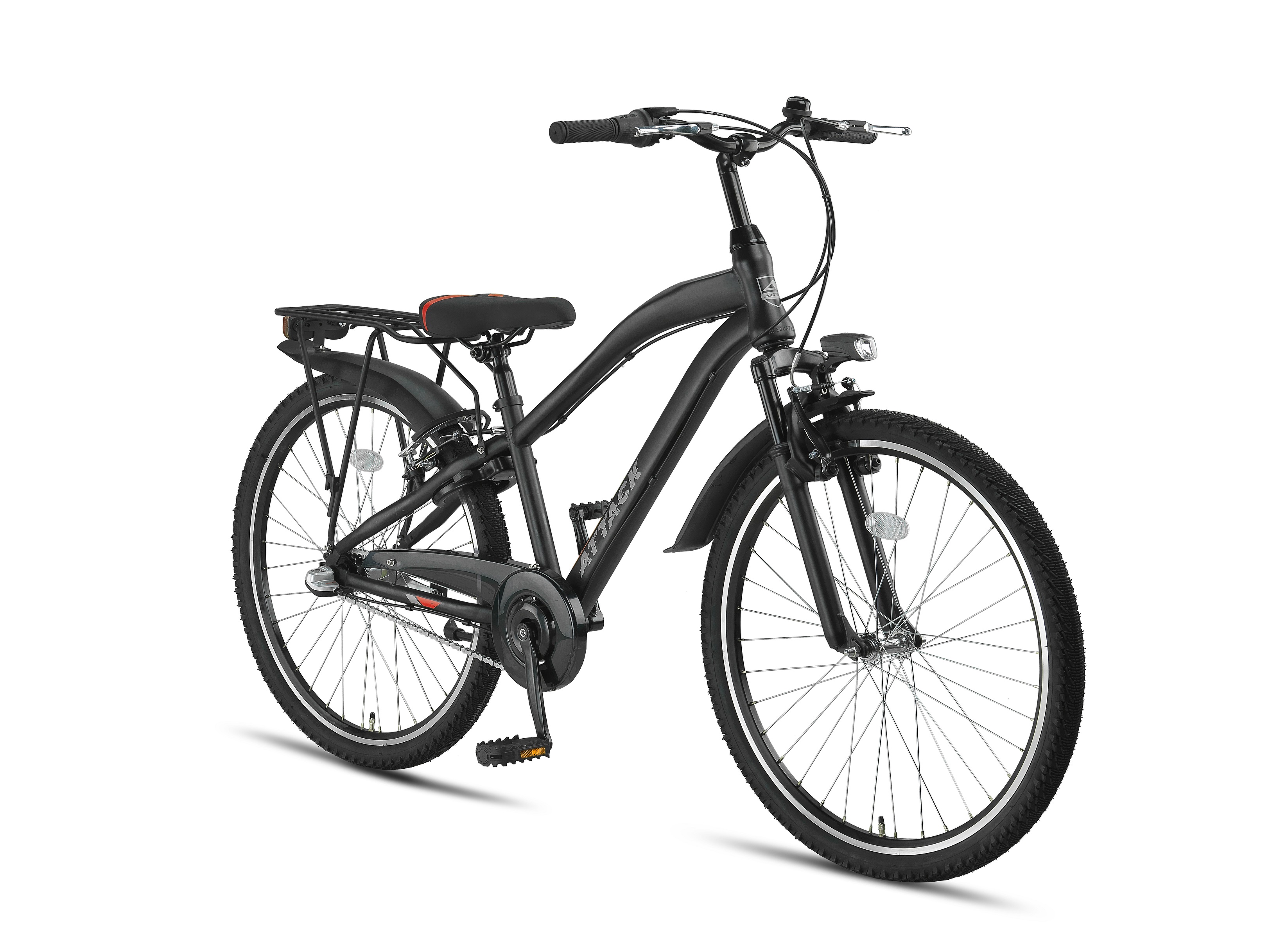 De Altec Attack N3 is een stoere mountainbike voor de jeugd. Omdat deze Altec Attack N3 met Shimano Nexus 3 naaf versnellingen en met terugtraprem is uitgevoerd is dit een ideaal instapmodel voor de jonge startende mountainbiker, maar is hij ook zeer geschikt voor gewoon dagelijks gebruik. Met de brede banden is geen terrein te ruig voor de Altec Attack N3, terwijl het niet al te groffe profiel op de banden ook geschikt is voor op de weg. De Altec Attack N3 wordt als 1 van de weinige mountainbikes compleet met standaard, verlichting, spatborden, bagagedrager en slot geleverd. En omdat een mountainbike er natuurlijk ook mooi uit moet zien is de Altec Attack N3 uitgevoerd in fraaie kleuren.