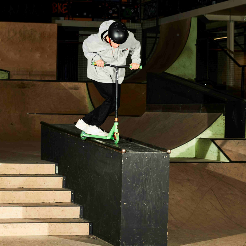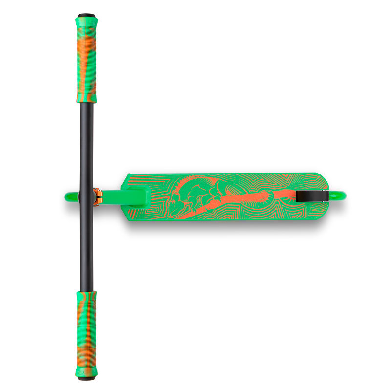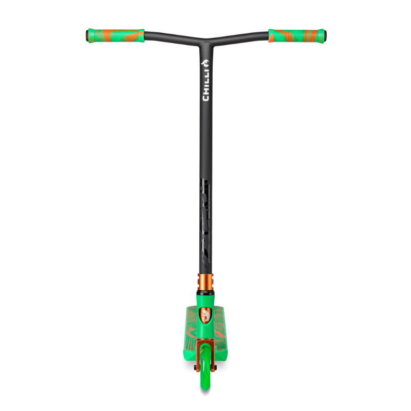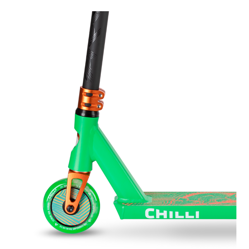 De Chilli Critter chameleon groen heeft de beste technische eigenschappen voor stunts, trucks en flairs, en maakt indruk met zijn geweldige design. Critters zijn kleine wezens met bijzondere vaardigheden, de meest interessante bewoners van planeet aarde. Ze dienden als inspiratie voor ons nieuwste Chilli Pro Scooter model Critter. De Chilli Critter chameleon groen met een totale hoogte van 88 cm is geschikt voor rijders van alle leeftijden vanaf 10 jaar. De Chilli Critter chameleon groen is een allround stuntstep waarmee je prima op straat uit de voeten kunt, maar die ook licht en sterk genoeg is om alle denkbare trucks in het scatepark te maken. De Chilli Critter chameleon groen is ook zeer gewild bij de wat oudere en meer ervaren rijders.