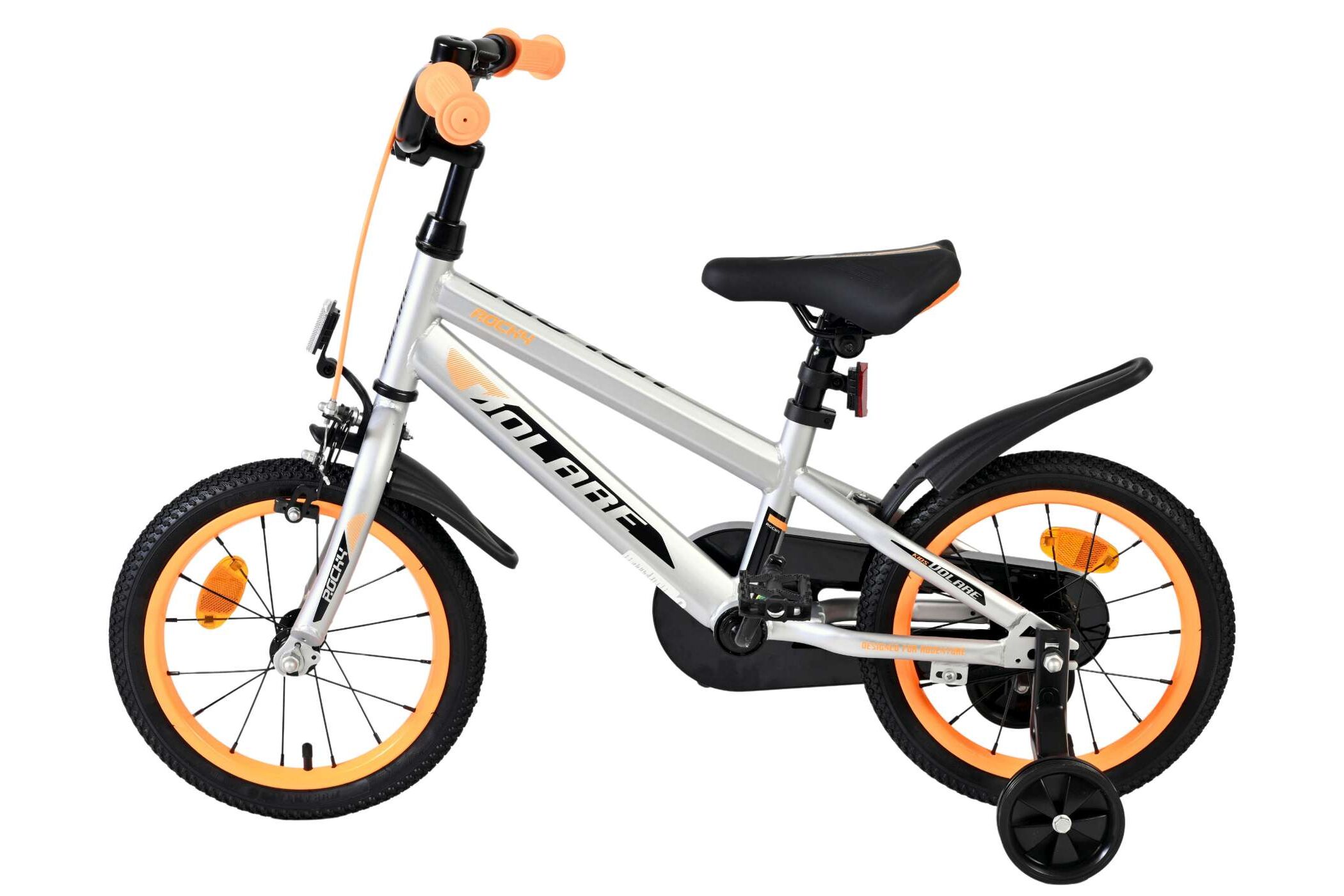 De Volare Rocky 14inch is compleet met zijwieltjes om veilig te kunnen leren fietsen. Met de terugtraprem en handrem kun je makkelijk stoppen op deze stoere Volare Rocky. Verder heeft de Volare Rocky spatborden en een gesloten kettingkast. En om hem kwalitatief helemaal perfect te maken heeft hij aluminium velgen en een aluminium stuurpen, extra kwaliteit trappers en extra brede spatborden. Deze Volare Rocky 14inch is geschikt voor kinderen van 3 1/2 tot 5 jaar met een kledingmaat van 98 tot 110. Fiets jij straks ook op deze Volare Rocky 12inch jongensfiets?