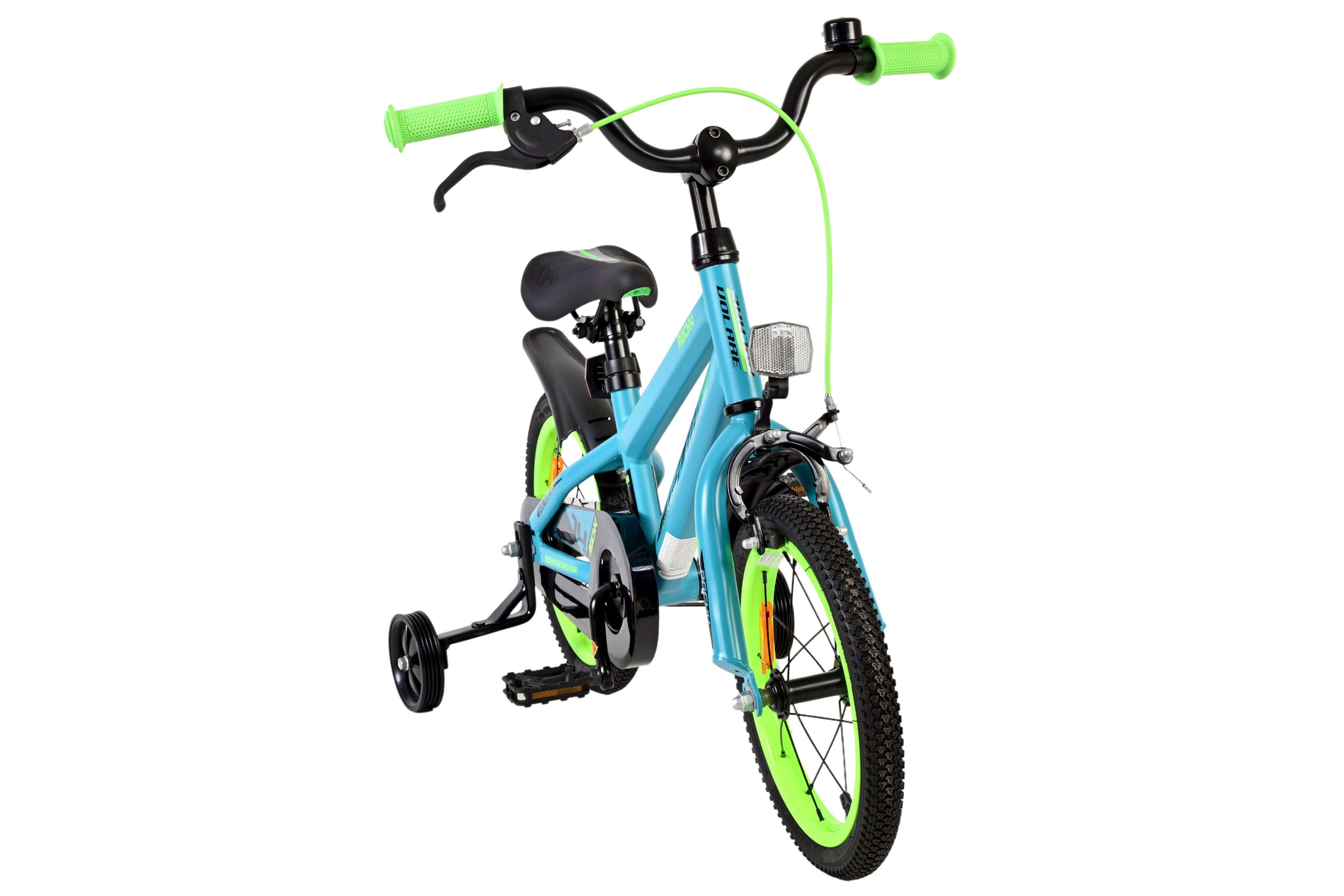 De Volare Rocky 14inch is compleet met zijwieltjes om veilig te kunnen leren fietsen. Met de terugtraprem en handrem kun je makkelijk stoppen op deze stoere Volare Rocky. Verder heeft de Volare Rocky spatborden en een gesloten kettingkast. En om hem kwalitatief helemaal perfect te maken heeft hij aluminium velgen en een aluminium stuurpen, extra kwaliteit trappers en extra brede spatborden. Deze Volare Rocky 14inch is geschikt voor kinderen van 3 1/2 tot 5 jaar met een kledingmaat van 98 tot 110. Fiets jij straks ook op deze Volare Rocky 12inch jongensfiets?